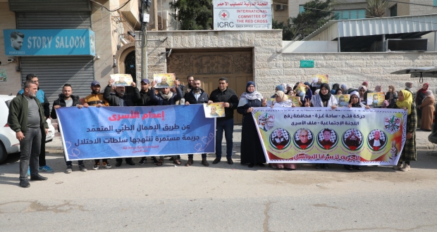 نفذ ملف الأسرى ساحة غزة بمشاركة محافظة رفح، اليوم الوقفة التضامنية الأسبوعية مع الأسرى في سجون الاحتلال، من أمام مقر الصليب الأحمر في غزة.