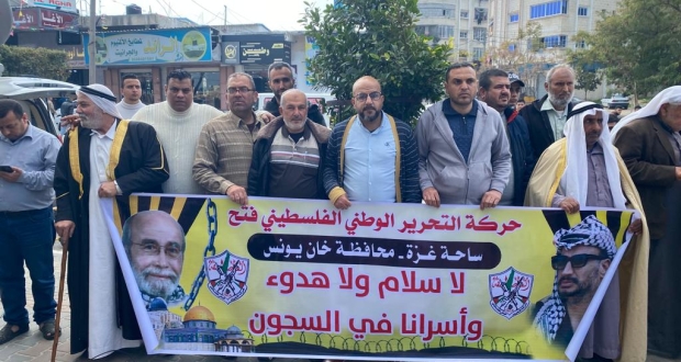 شاركت حركة فتح بمحافظة خانيونس في وقفة التضامن مع الأسرى البواسل التي نظمتها جمعية واعد وتجمع مخاتير خانيونس.