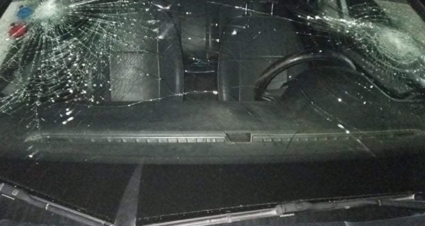رشق مستوطنون مركبات المواطنين بالحجارة، مساء اليوم الإثنين، على طريق مخيم الجلزون، قرب المدخل الشمالي لمدينة البيرة.