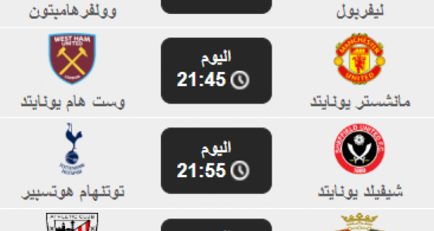 ففي مباريات مؤجلة من الأسبوع السابع للدوري الإنجليزي الممتاز، يلعب آرسنال مع إيفرتون الساعة التاسعة و45 دقيقة مساءً بتوقيت فلسطين، ومصر، وتبث عبر قناة AD SPORTS Premium 1، كما يتقابل ليفربول مع وولفرهامبتون الساعة العاشرة مساءً عبر قناة beIN Sports 2 HD Premium.
