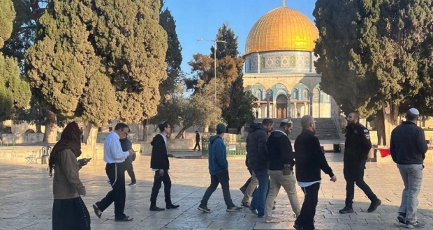 اقتحم عشرات المستوطنين، اليوم الخميس 9/3/2023، باحات المسجد الأقصى المبارك من جهة باب المغاربة.