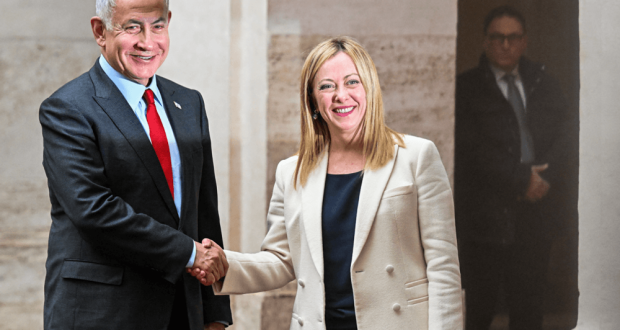 التقى رئيس الحكومة الإسرائيلية، بنيامين نتنياهو يوم الجمعة، برئيسة حكومة إيطاليا جورجيا ميلوني، في روما، فيما تظاهر العشرات ضد خطة إضعاف جهاز القضاء في العاصمة الإيطالية بالتزامن مع اللقاء بينهما.