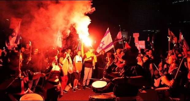وتتواصل الاحتجاجات الضخمة في إسرائيل على خلفية موافقة البرلمان الإسرائيلي (الكنيست) على مشروع قانون "الإصلاحات القضائية" الذي قدّمته حكومة رئيس الوزراء بنيامين نتنياهو، ما دفع منتقديه للخروج إلى الشوارع للتظاهر.