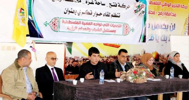 نظمت حركة فتح بساحة غزة في محافظة رفح، اليوم الأحد، لقاءً حوارياً بعنوان "مستقبل الشباب الفلسطيني وسط استمرار حالة الانقسام وانعدام الرؤية السياسية" في مكتب المحافظة.