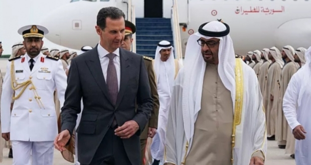 وكان في استقبال الأسد نظيره الشيخ محمد بن زايد وعدد من المسؤولين في أبوظبي.