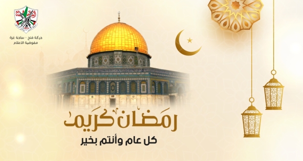 تتقدم حركة التحرير الوطني الفلسطيني فتح بساحة غزة، بأصدق التهاني والتبريكات من عموم أبناء شعبنا المناضل على امتداد تواجدهم في الداخل والخارج، ومن مكوناته الوطنية والمجتمعية بمناسبة حلول شهر رمضان المبارك.