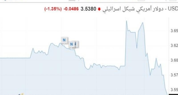 حيث يشهد الدولار هزات متتالية ما بين الصعود والهبوط مقابل الشيكل بسبب الأزمة السياسية القائمة في اسرائيل.