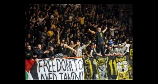 أقدمت جماهير فريق "أيك أثينا" اليوناني على حرق علم الاحتلال خلال مواجهة نادي "هبوعيل القدس" الإسرائيلي خلال مباراة نصف النهائي لدوري أبطال أوروبا لكرة السلة في قاعة "آنو ليوزيا" الأولمبية الأربعاء.