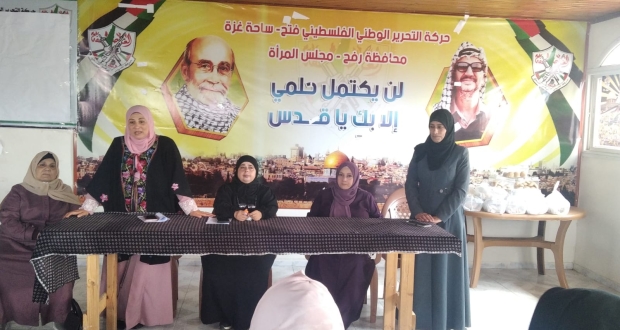 عقد مجلس المرأة في حركة فتح بمحافظة رفح قاطع الوسط، لقاءً دينياً بعنوان "العشر الأواخر من رمضان شفاء للأرواح"، بحضور أعضاء هيئة القاطع والأخوات الفاعلات.