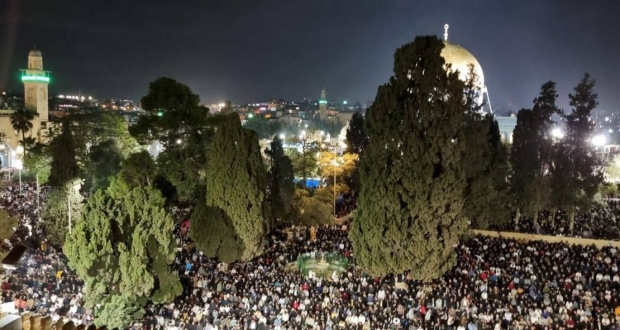 وذكرت المصادر المقدسية، بأن نحو 280 ألف مصل يحيون ليلة السابع والعشرين من رمضان في رحاب المسجد الأقصى المبارك.