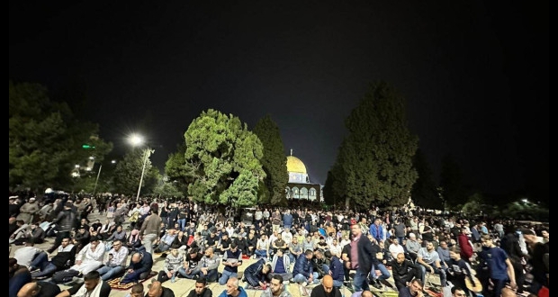 وقالت دائرة الأوقاف الإسلامية في القدس، إن نحو 80 ألف مصلٍ أدوا صلاة العشاء والتراويح في المسجد الأقصى هذه الليلة.