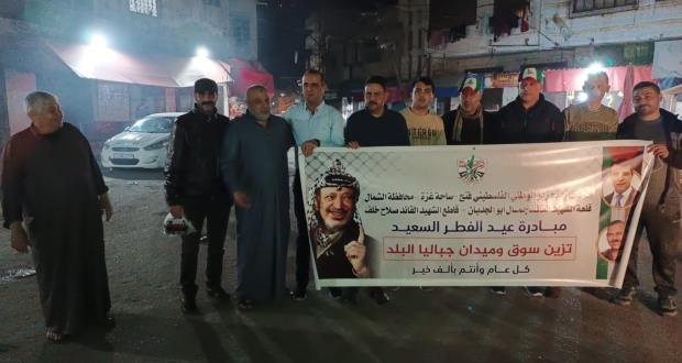 أطلقت حركة فتح بمحافظة الشمال، قلعة الشهيد القائد جمال أبو الجديان، بقاطع الشهيد صلاح خلف، مبادرة تزيين ميدان مدينة جباليا البلد بمناسبة حلول عيد الفطر السعيد.