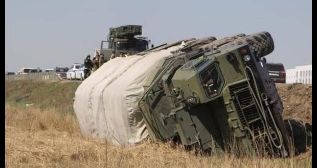 أفادت وسائل إعلام روسية أن جنديا مخمورا كان جالسا خلف عجلة القيادة تسبب بانقلاب شاحنة تحمل نظام صواريخ مضاد للطائرات من طراز "S-400".