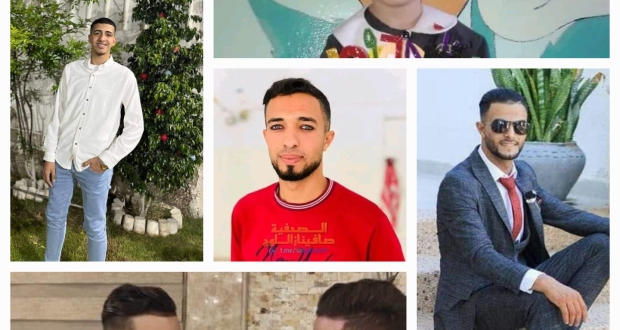 والشهداء هم: الشهيد المزارع محمد يوسف أبو طعيمة 25 عاما من بلدة عبسان الكبيرة، الشهيد الشاب أيمن كرم صيدم 26 عاما من رفح، الشهيد الشاب علم سمير عبد العزيز 27عاماً من رفح، الشهيد علاء ماهر بركة من عبسان الكبيرة، الشهيدة الطفلة ليان بلال مدوخ 10 سنوات سكان مدينة غزة- الصحابة، والشهيد يزن عليان ٢٠ عام من مدينة غزة.