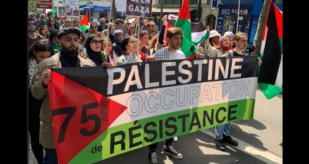 وانطلقت المظاهرة من ساحة "شاتلي" حتي ساحة الجمهورية بباريس، بمشاركة العديد من الجمعيات والأحزاب الفرنسية ولجان التضامن مع الشعب الفلسطيني؛ وذلك دعماً وإسناداً لشعبنا الفلسطيني في الأراضي الفلسطينية في ظل العدوان الغاشم الذي تشنه دولة الاحتلال، على المدنيين الفلسطينيين في القطاع وممارساتها التعسفية بحق الأسرى الفلسطينيين.