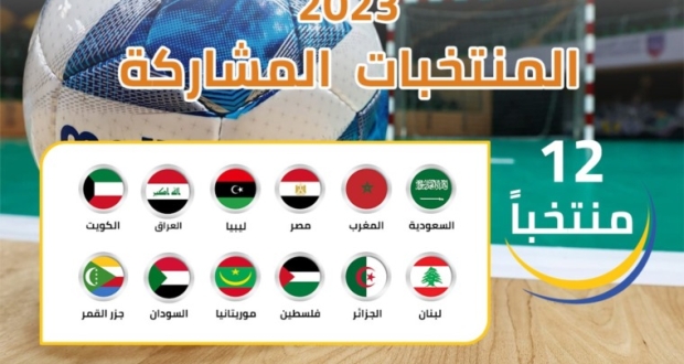 وضمت المجموعة الأولى: منتخبات السعودية والجزائر وليبيا والسودان، والمجموعة الثانية: المغرب وجزر القمر والكويت ولبنان، والثالثة منتخبات مصر وموريتانيا وفلسطين والعراق، وستقام منافساتها في صالة وزارة الرياضة في استاد الأمير عبد الله الفيصل بمحافظة جدة.