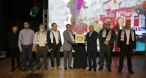 وفي نهاية الفعالية تم تكريم أسرة الراحل الكبير ممثلة بالحاجة أم علي والدكتور أيمن شاهين.