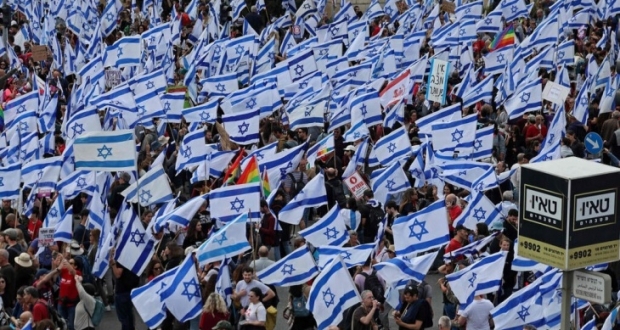 وشارك عشرات الآلاف من الإسرائيليين، أمس السبت، في الأسبوع الـ 21 للاحتجاج على الإصلاح القانوني في جميع أنحاء إسرائيل، في ظل خوفهم من تجديد التشريع بعد إقرار الميزانية في الكنيست .