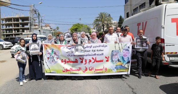 نفذ ملف الأسرى ساحة غزة بمشاركة محافظة خانيونس الوقفة التضامنية الأسبوعية مع أسرانا البواسل من أمام مقر الصليب الاحمر بغزة، وكذلك في خيمة الاعتصام مع الأسير المريض وليد دقة، والمقامة على باب الصليب.