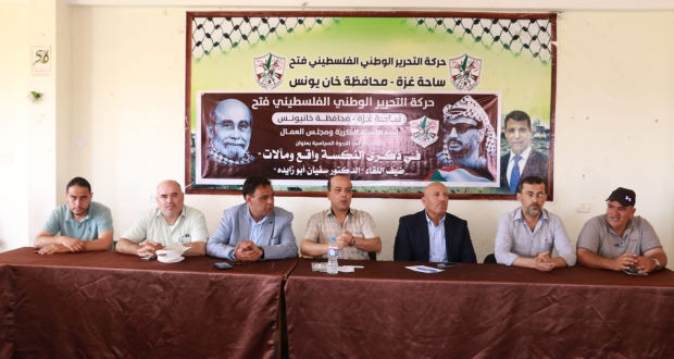 نظمت لجنة التعبئة الفكرية ومجلس العمال بمحافظة خانيونس لقاء سياسي، بعنوان"في ذكرى النكسة واقع ومآلات" بحضور القيادي في تيار الإصلاح الديمقراطي في حركة فتح الدكتور سفيان ابوزايدة، ومحمد الكوكبي أمين سر محافظة خانيونس، ولفيف من كوادر التيار بالمحافظة.