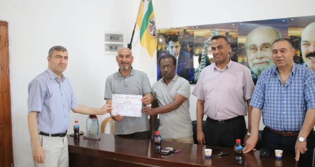 كرم المكتب الحركي الفرعي للإداريين والإقتصاديين بحركة فتح في محافظة غزة، المشاركين في الدورة التدريبية في المهارات الإدارية والقيادية.
