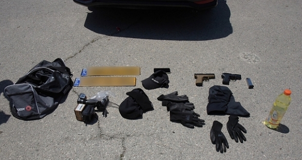 وقالت الشرطة إنها عثرت بحوزة المشتبه بهم على "مسدسين ملقمين" وجاهزين لإطلاق النار، وأفادت الشرطة بأن "السيارة التي استخدمها المشتبه بهم كانت مسروقة، ولوحات الترخيص المثبتة عليها مسروقة كذلك من مركبة أخرى".