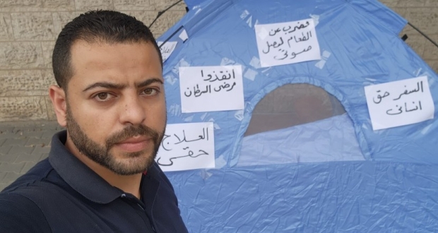 خرج الاسير المحرر اياد الجرجاوي عن صمته بعد ان أضناه المرض وتخلى عنه القريب والبعيد وبعد معاناة طويلة من محاولة استكمال السفر للعلاج في الخارج ، من مرض السرطان وجميعها باءت بالفشل قرر الاعتصام في خيمة أمام مقر الصليب الاحمر بغزة لتسليط الضوء على معاناته.