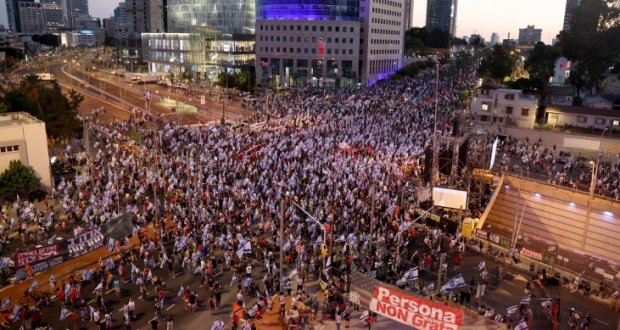تجددت، مساء السبت، التظاهرات الاحتجاجية ضد حكومة بنيامين نتنياهو وخطتها لإضعاف جهاز القضاء، للأسبوع الخامس والعشرين على التوالي.