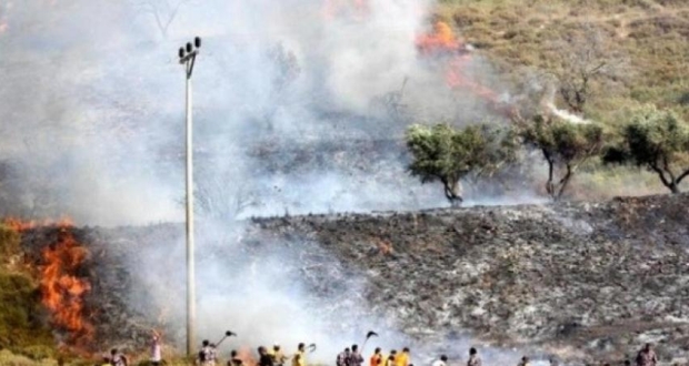 حرق مستوطنون، اليوم الأحد، عشرات الدونمات من أراضي المواطنين في قرية اللبن الشرقية، جنوب نابلس.