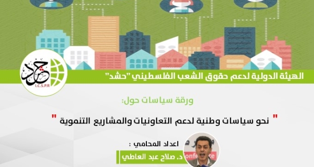 غزة: أصدرت الهيئة الدولية لدعم حقوق الشعب الفلسطيني "حشد"، ورقة سياسيات حول: “نحو سياسات وطنية لدعم التعاونيات والمشاريع التنموية”، إعداد د. صلاح عبد العاطي.
