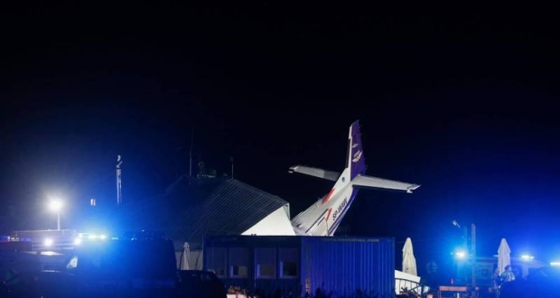 وتحطمت الطائرة فوق مستودع يتواجد فيه 13 شخصا لجأوا إليه للاحتماء تحسبا لعاصفة.