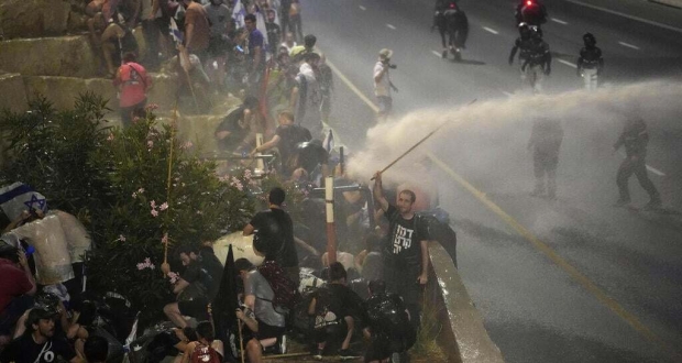 وفي تل أبيب سد متظاهرون محاور أيالون وطريق نمير، وقامت الشرطة الإسرائيلية بتفريقهم مستخدمة خراطيم المياه والخيالة.
