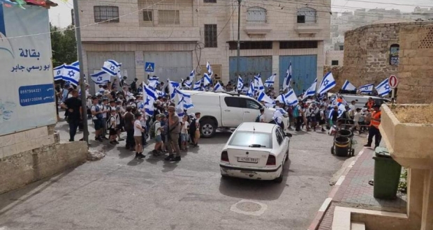 وأفادت مصادر صحفية، بأن مئات المستوطنين شاركوا وهم يرفعون الاعلام الاسرائيلية، بمسيرة استفزازية انطلقت من مستوطنة "بيت رومانو" ومدرسة أسامة بن المنقذ التي حولها الاحتلال الى معهد ديني لتخريج الحاخامات، وجابوا شوارع وأزقة وسط مدينة الخليل وصولا لساحات وباحات الحرم، ورددوا، هتافات عنصرية معادية للعرب ابرزها "الموت للعرب" كما عرقلت قوات الاحتلال مرور المواطنين في البلدة القديمة لعدة ساعات ومنعت السكان الوصول الى منازلهم.