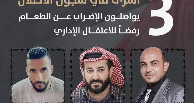 يواصل 3 أسرى في سجون الاحتلال الإسرائيلي إضرابهم المفتوح عن الطعام، وهم سلطان خلوف وكايد الفسفوس وماهر الأخرس.