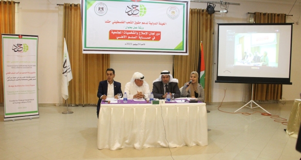 وعرج في حديثه حول مفهوم السلم الأهلي، والأسباب التي تهدد السلم الأهلي والتماسك الاجتماعي في فلسطين، وأسباب انهيار السلم الأهلي، والأسباب التي تقف وراء حالة الاحتقان والتوتر الاجتماعي وتشكل بيئة حاضنة للعنف والتطرف.