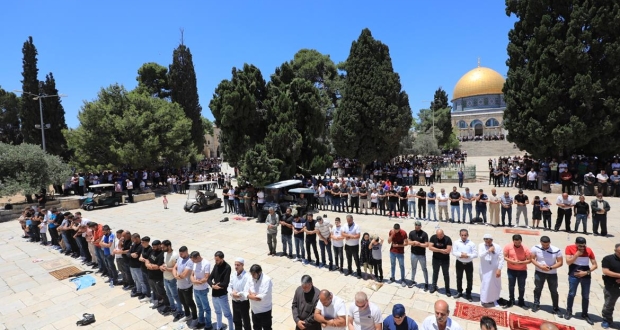 أدى عشرات آلاف المصلين صلاة الجمعة، في رحاب المسجد الأقصى المبارك، وسط إجراءات عسكرية مشددة، فرضتها قوات الاحتلال الإسرائيلي على أبواب البلدة القديمة ومداخلها في القدس المحتلة.