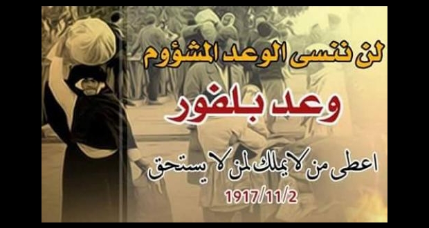 يصادف اليوم الخميس، الثاني من تشرين الثاني، الذكرى الـ106 لصدور اعلان بلفور المشؤوم، الذي منحت بموجبه بريطانيا الحق لليهود في إقامة وطن قومي لهم في فلسطين.