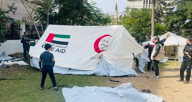 أقامت اللجنة الوطنية للشراكة والتنمية وبدعم من الهلال الأحمر الإماراتي، مخيماً لإيواء النازحين في منطقة غرب رفح تتضمن عشرات الخيام المجهزة.