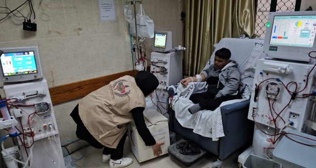 تفقد متطوعو الهلال الأحمر الإماراتي، واللجنة الوطنية للشراكة والتنمية بالمحافظة الوسطى، مرضى الكلى في مستشفى شهداء الاقصى في مدينة دير البلح.