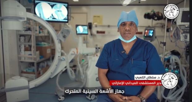 وقال مدير المستشفى الميداني الإماراتي الدكتور سلطان الكعبي، "أن دولة الإمارات دشنت جهاز الأشعة السينية المتحرك في غرف العمليات الجراحية، هذا الجهاز يعتمد على امكانات عالية تساعد أطباء الجراحة والعظام على تقديم أرقى وأعلى الجراحات للمصابين والجرحى في قطاع غزة".