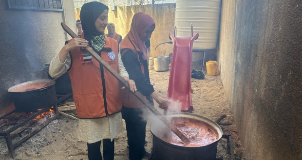 ضمن عملية الفارس الشهم 3 بدعم من دولة الإمارات العربية المتحدة.. أعدَّ متطوعون الطعام في "تكيات الخير " بالمحافظة الوسطى لإطعام آلاف النازحين داخل مراكز ومخيمات الإيواء في قطاع غزة.