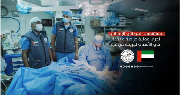 أجرى الطاقم الطبي المتخصص في المستشفى الميداني الإماراتي، عملية جراحية هي الأولى من نوعها في قطاع غزة لسيدة تعاني من فقدان شبه تام للحركة في يدها اليسرى جراء إصابتها بطلق ناري في الطرف العلوي وإصابة في عصبيين رئيسيين أدت إلى سقوط في اليد وآلام مبرحة، لتحسين حركتها وتخفيف الألم الذي تعاني منه في الفترة السابقة.