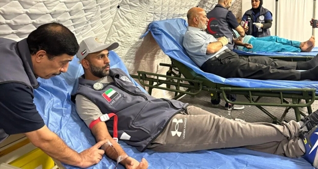 وشاركت الطواقم الطبية والمتطوعين في حملة التبرع بالدم للتخفيف من معاناة سكان قطاع غزة والوقوف إلى جانبهم ومساندتهم في هذا الوقت الصعب، وهو تعبير صادق عن أواصر الأخوة والتلاحم المشترك بين الإمارات وفلسطين.