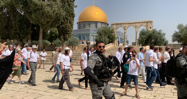 وأفاد شهود عيان، بأن مستوطنين اقتحموا الأقصى بأكثر من مجموعة، عبر باب المغاربة، ونفذوا جولات استفزازية في باحاته، فيما أن شرطة الاحتلال حولت البلدة القديمة من مدينة القدس المحتلة إلى ثكنة عسكرية، وانتشر مئات من عناصر الشرطة على مسافات متقاربة، خصوصا عند بوابات الأقصى، وشددت من إجراءاتها العسكرية على أبواب البلدة القديمة والمسجد الأقصى، وفرضت قيودا على دخول المصلين.