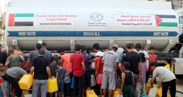 وتُقدم عملية الفارس الشهم 3 المياه الصالحة للشرب للنازحين في مراكز الإيواء، في إطار المبادرات الإنسانية والخدمات الأساسية التي تُقدمها دولة الإمارات، لمساندة النازحين في ظل الأحداث المؤسفة، حيث تعمل في كل مكان زمان على دعم الأسر الفلسطينية.