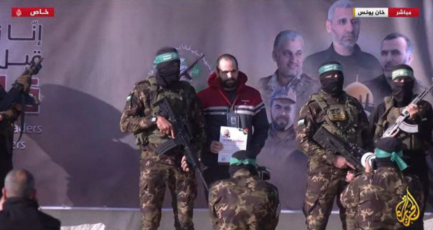 سلَّمت كتائب القسام، الجناح العسكري لحركة كحماس، صباح اليوم السبت، الأسيرين الإسرائيليين عوفر كالديرون ويردين بيبس إلى الصليب الأحمر في محافظة خانيونس جنوب قطاع غزّة.