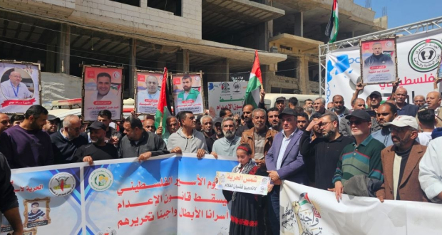 ورفع المشاركون الأعلام الفلسطينية وصور الأسرى، مرددين هتافات تؤكد التضامن الكامل مع نضالهم، ومطالبين المجتمع الدولي ومؤسسات حقوق الإنسان بتحمل مسؤولياتها تجاه الانتهاكات المستمرة بحقهم داخل السجون.
