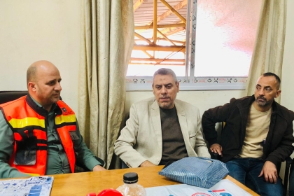 لجنة الطوارئ العليا في شمال قطاع غزة تزور الطبيب الدكتور نهاد غنيم الذي فقد أسرته بمشروع بيت لاهيا